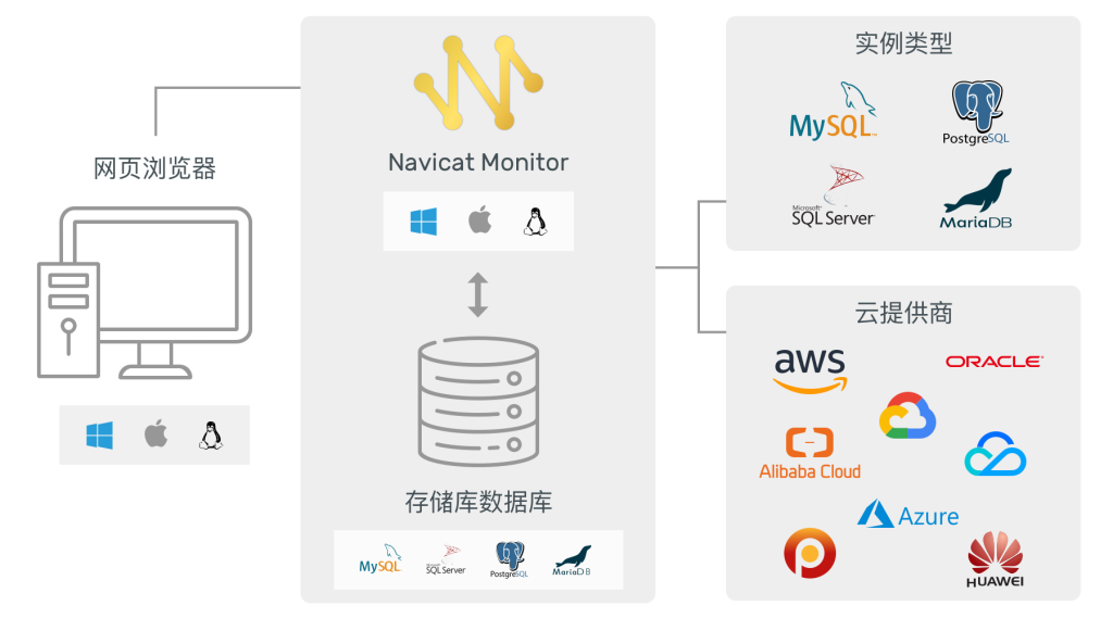 Navicat Monitor 是一款基于服务器的软件,可以使用网页浏览器从任何地方访问。通过网络访问,你可以全天候轻松无缝地掌握全球服务器的状况。